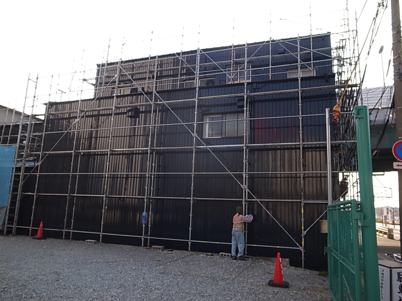 会館の外壁描画です。 鋼板の凹凸がなかなか厄介でしたが問題なく納まりました。